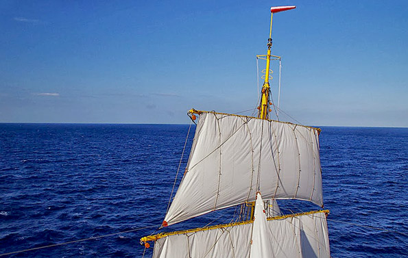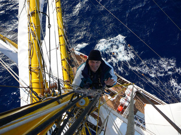 Unser Fördervereinsmitglied Hermann Weigand wollte einmal wissen, wie die Aussicht so ist, wenn man die Royal-Rah eines modernen Großseglers erklommen hat. Hier sein Ergebnis: