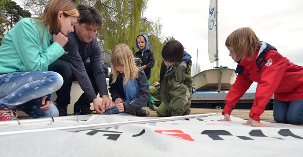Bei unserem Auftakt zum Jugendtraining 2014 haben Eltern vs. Kinder mal ausgetestet, wer einen Opti schneller segelfertig machen kann.