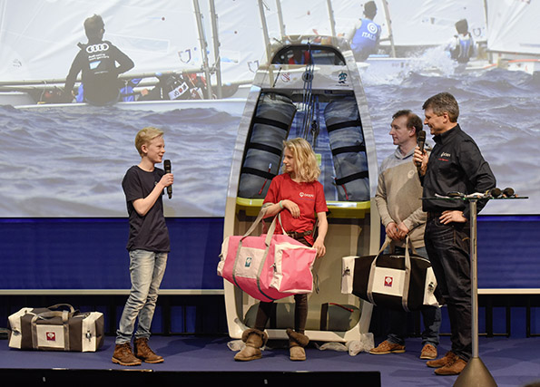 Den Sack komplett zugemacht hat dann Paul Strohfeldt, der beim bundesweiten Opti-A-Cup den zweiten Platz an Land ziehen konnte und dafür vor ein paar Tagen auf der Düsseldorfer Bootsmesse nicht nur geehrt wurde, sondern auch an einer von Dreifach-Olympiasieger Jochen Schümann moderierten Indoor-Regatta der erfolgreichsten Opti-Segler des vergangenen Jahres teilnehmen durfte.