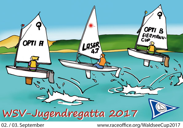 Unsere Jugendregatta 2017 für Opti-A, Opti-B und Laser 4.7 startet am kommenden Samstag. Um 13 Uhr geht es auf dem Wasser los. Wir freuen uns, dass wir bereits insgesamt mehr als 50 Meldungen verzeichnen können. Wer noch dabeisein möchte, ist herzlich willkommen. Gemeldet werden kann hier: www.raceoffice.org/WaldseeCup2017