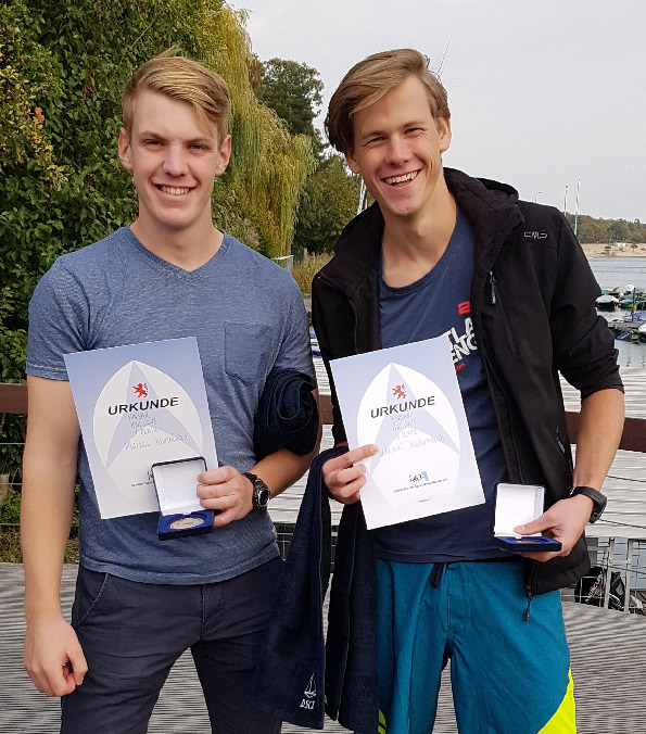 …the WSV Langen! Markus Heinbücher und Benedikt Walkembach haben am Wochenende Nerven bewiesen und sich bei der hochkarätig besetzten zweiten Serie zur diesjährigen Hessenmeisterschaft den Titel geholt. 33 Boote aus weiten Teilen des Bundesgebietes waren auf dem Waldsee, bei der von unserem Nachbarverein DSCL ausgerichteten Regatta, am Start. Zusammen mit dem fabelhaften Ergebnis der ersten Serie, die beim SC Inheiden ausgetragen wurde, reichte den beiden jetzt ein achter Rang in der Gesamtwertung (zweite Hessen), um den Titel klar zu machen. Wir gratulieren! Aber sowas von.
